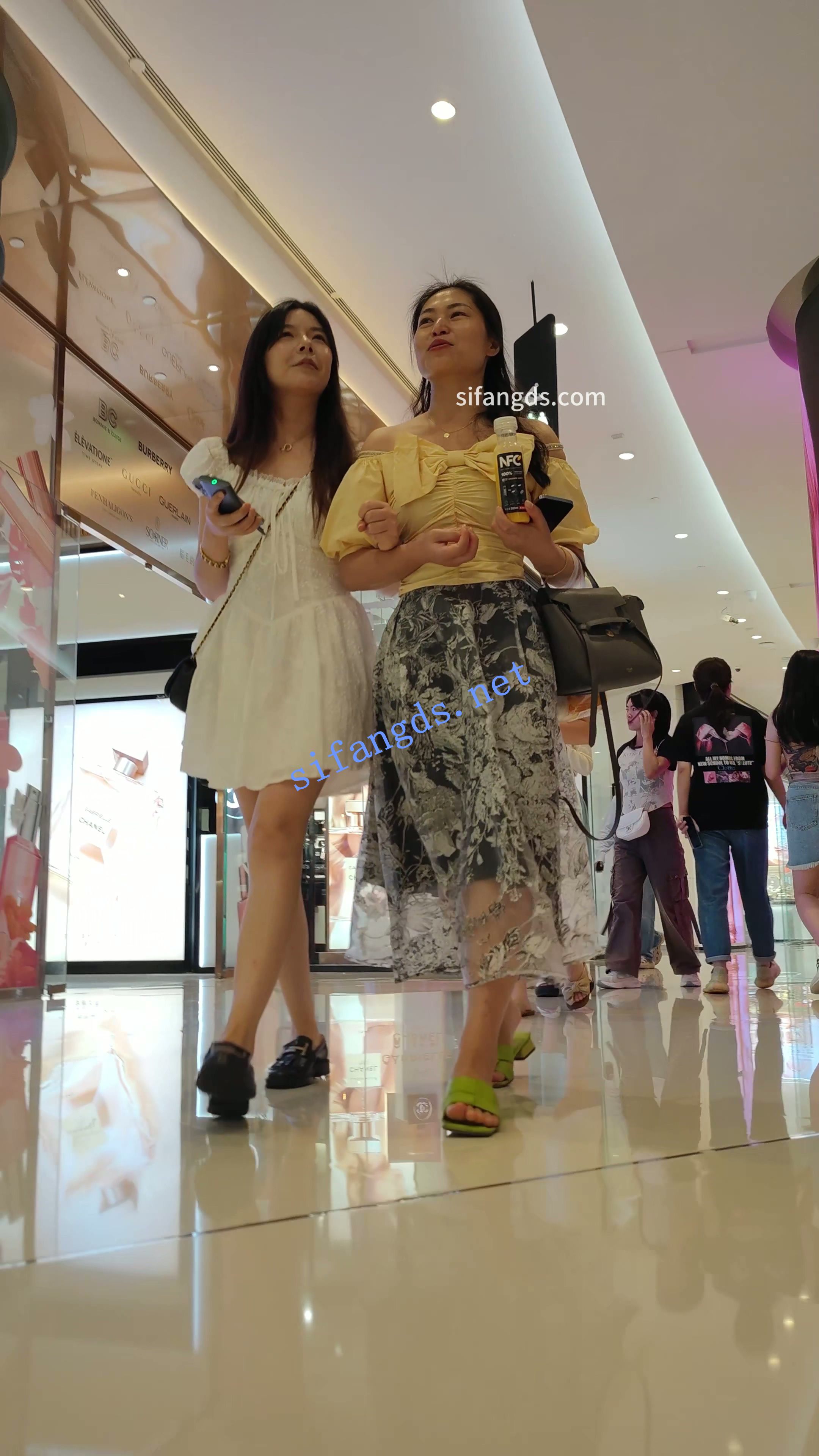 【说明】:白色连衣裙小姐姐和闺蜜逛街,灰色内内