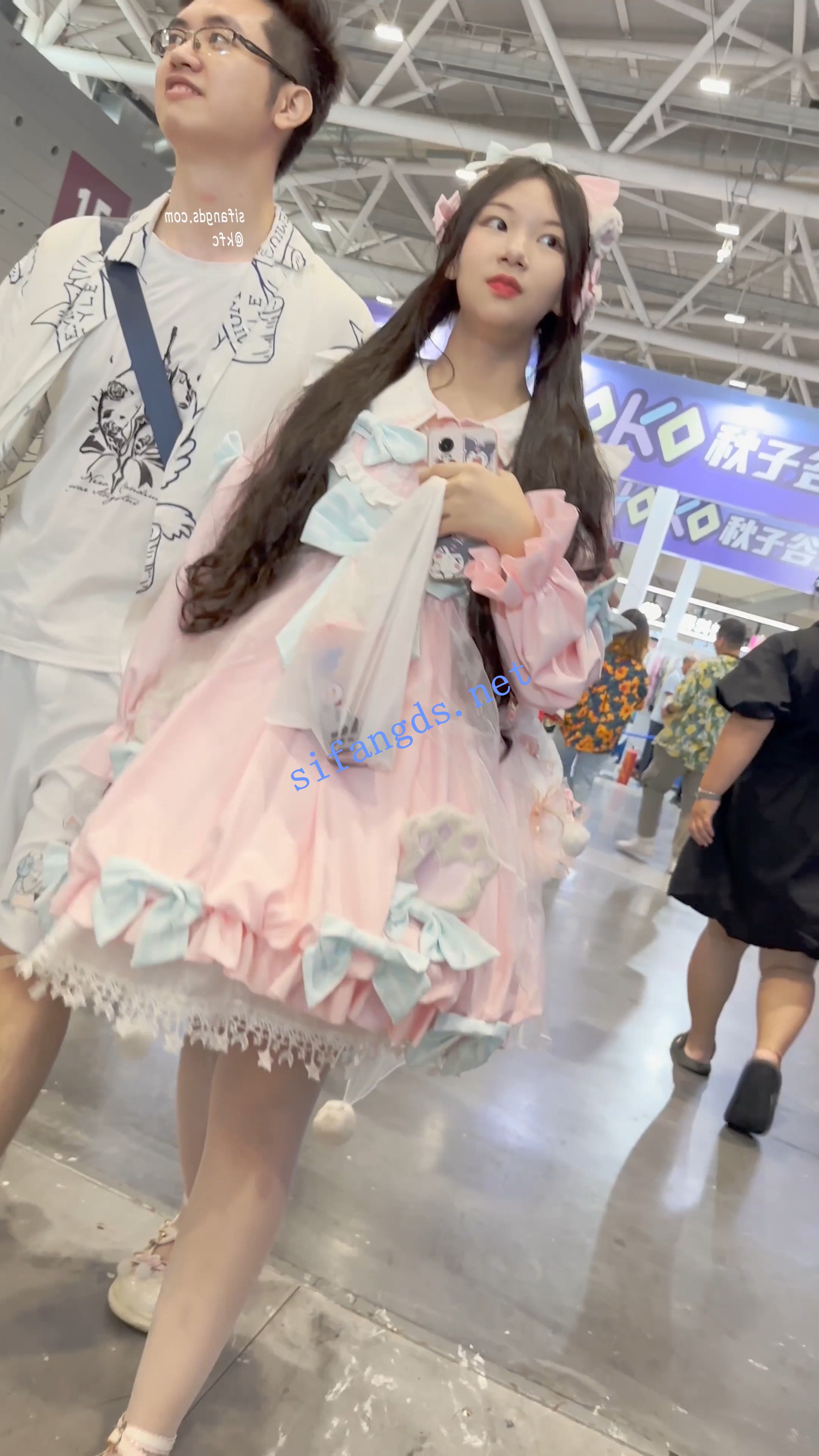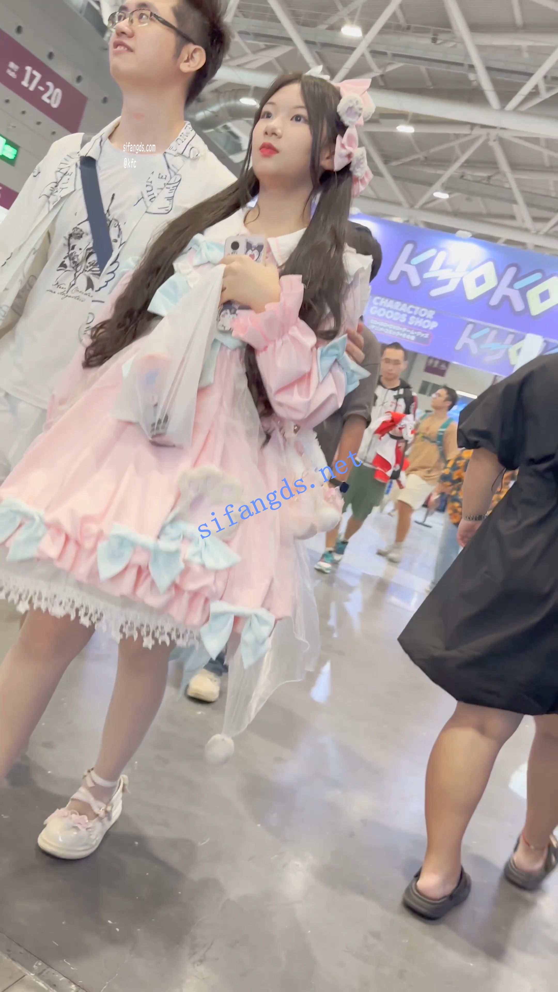 【KFC】洛丽塔裙学生妹和男友逛街·白丝袜淡绿色内内前后CD