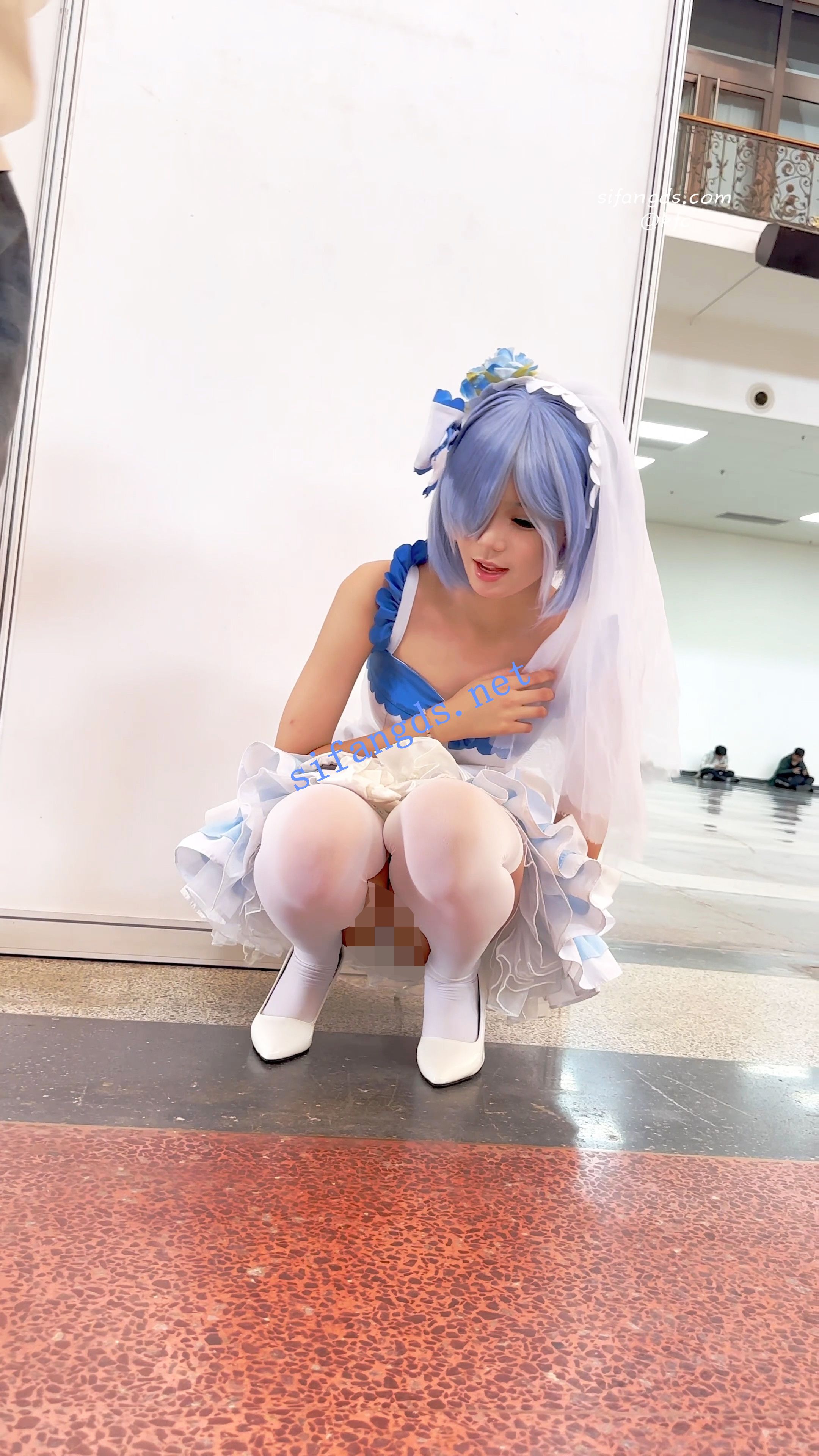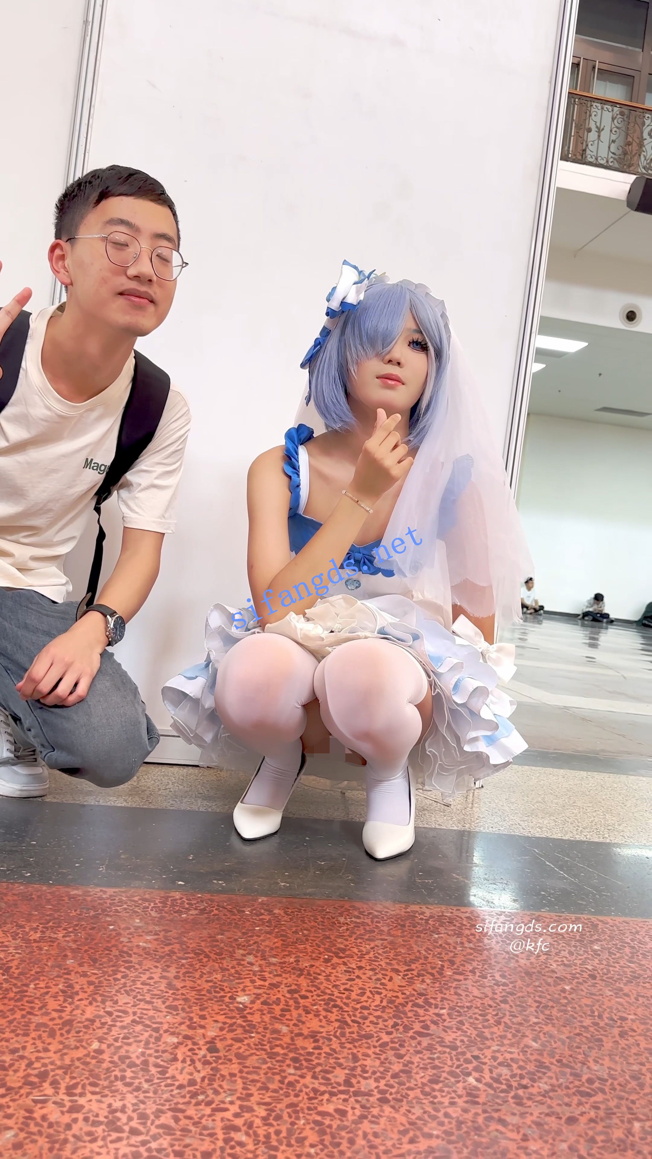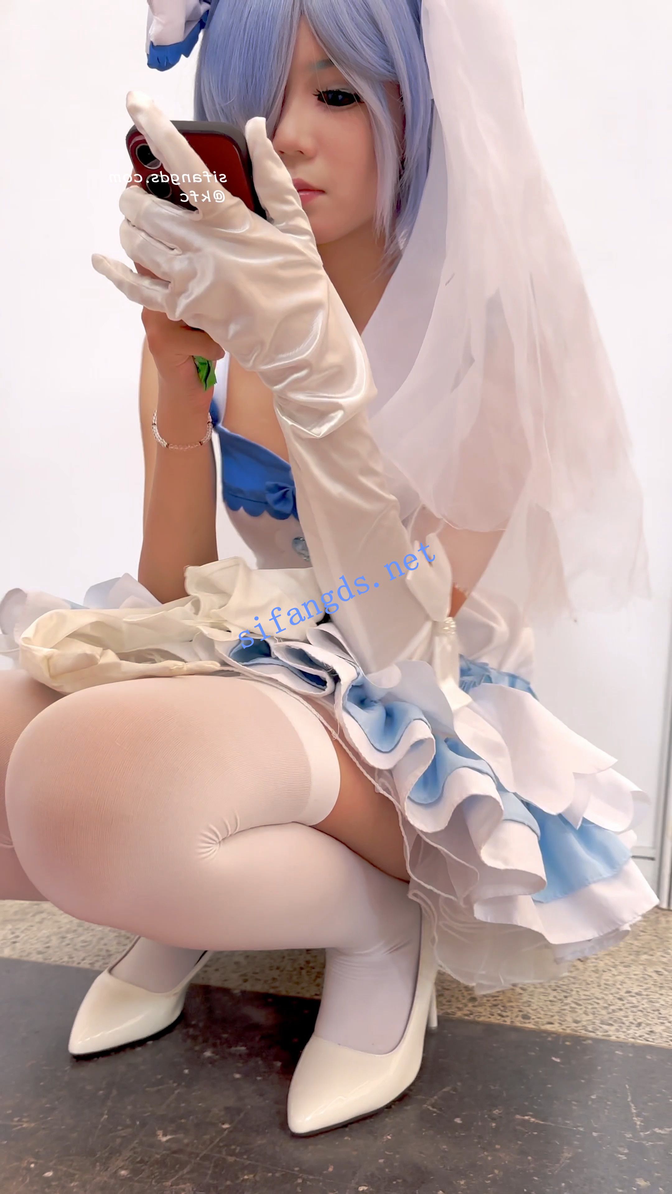 【KFC】顶级身材COSER蕾姆学生妹·过膝白丝婚纱短裙白内可爱