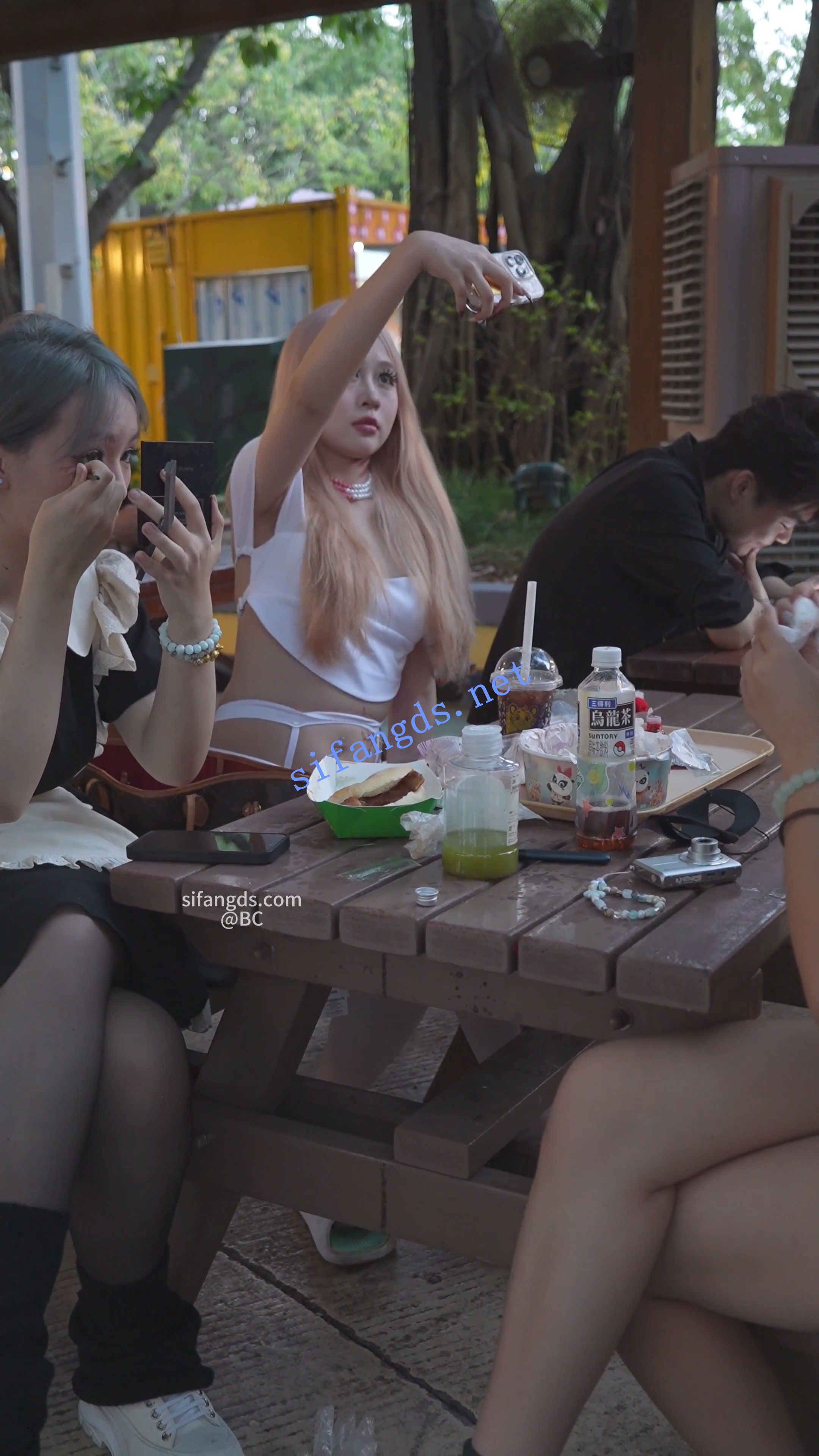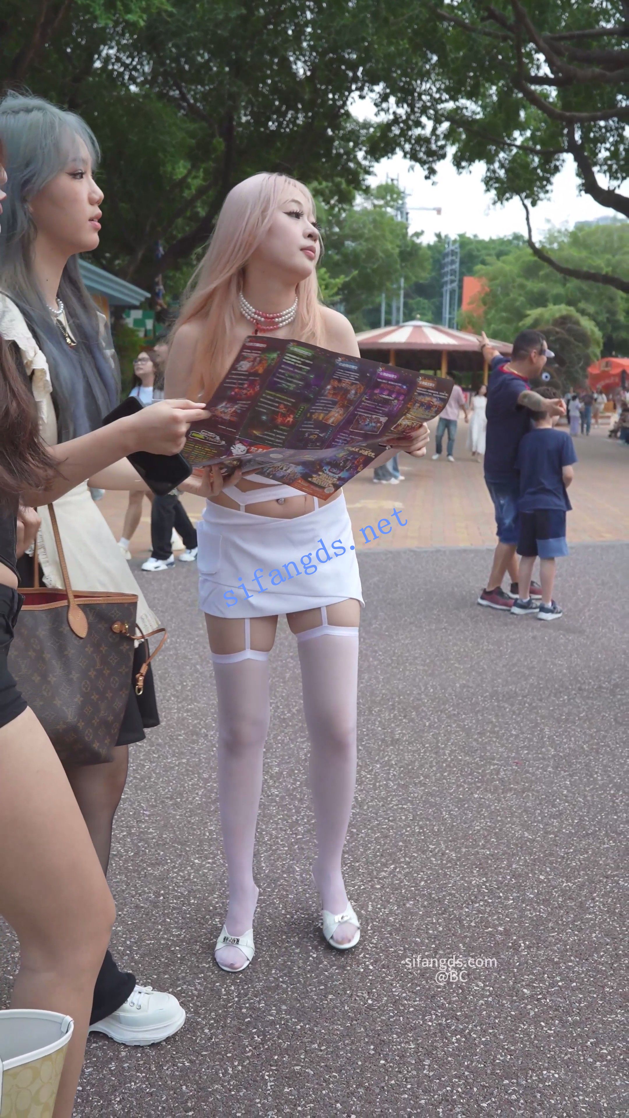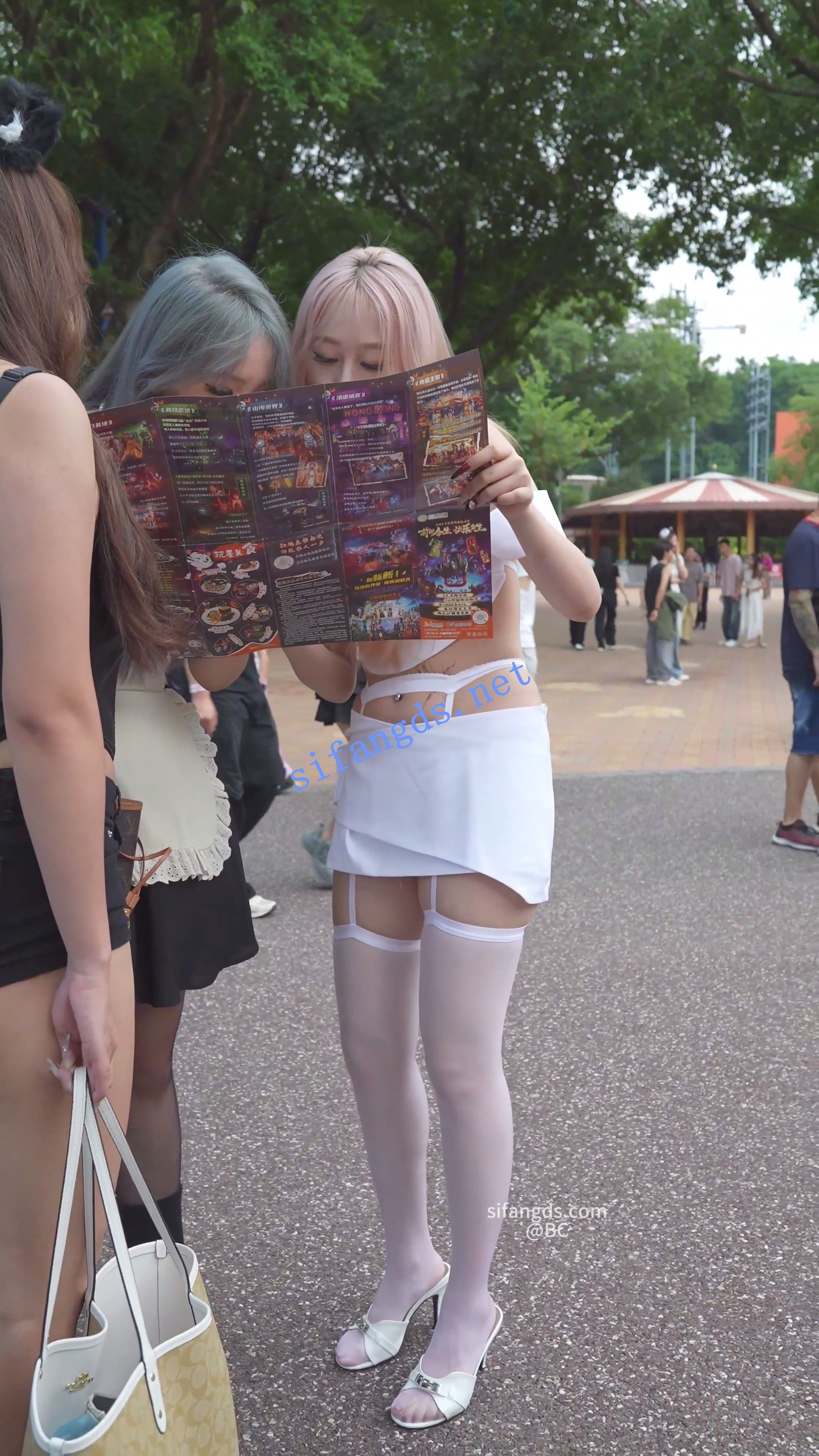 金发美女穿着包臀裙露背套装和姐妹一起去游乐园,吊带丝袜的腰带直接露外面,背面视角可以看到美女穿的是CK牌子的内裤,坐下来自拍和换鞋的时候由于裙子太短,美女内裤直接露给周围人看,从白天一直拍到晚上,天黑了开闪光灯继续拍,开灯之后发现美女内裤中间尿湿了一块,前后角度CD。(坐过山车的时候发现美女旁边的座位空着,果断坐到旁边,试图趁乱从旁近距离拍摄内裤,结果低估了过山车的威力,手机直接甩飞了,后面也没找到,有点可惜)。.