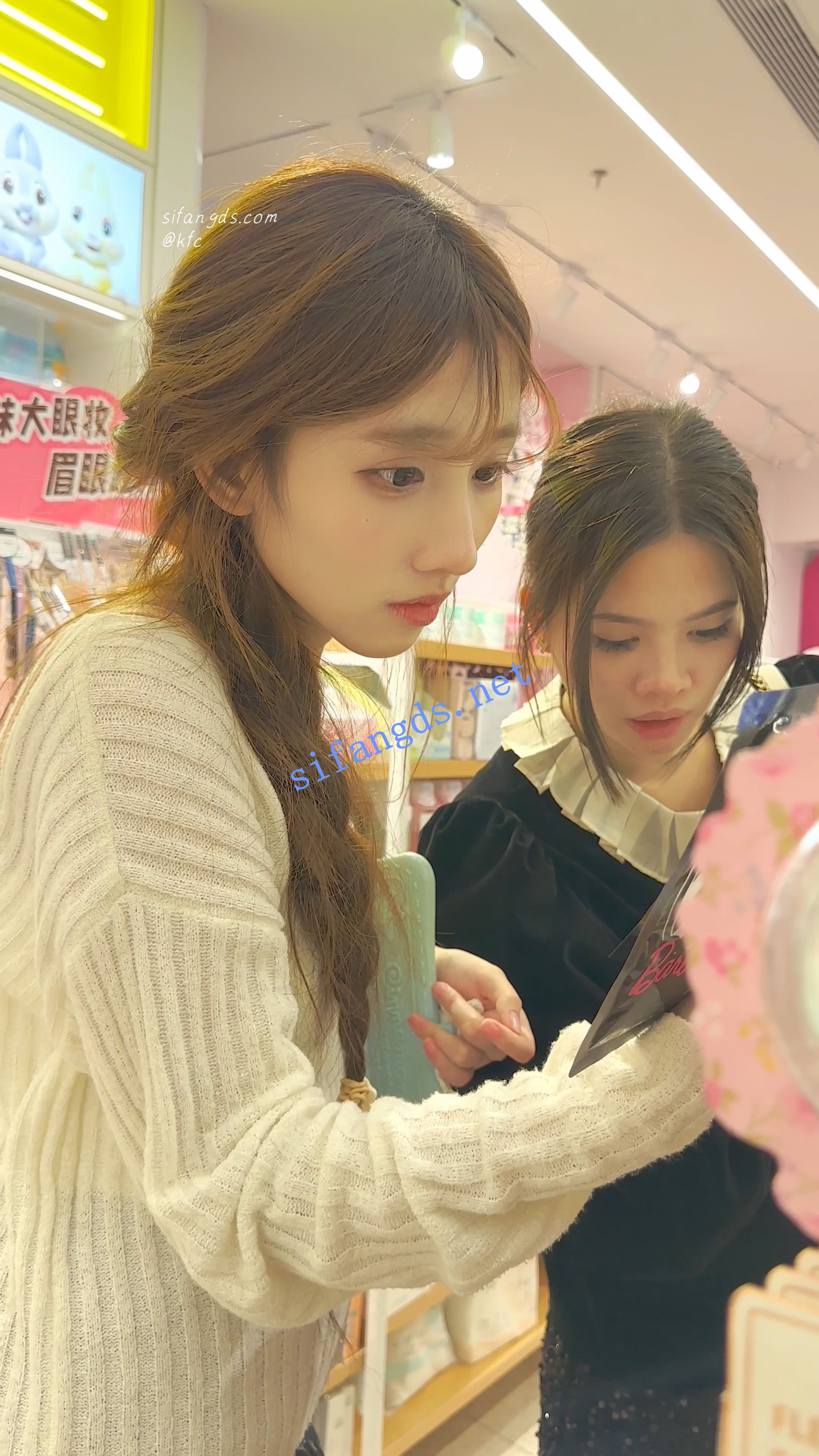 (BC-AA-587)百褶裙美女逛商场..细内衬挡不住微透蕾丝边内裤